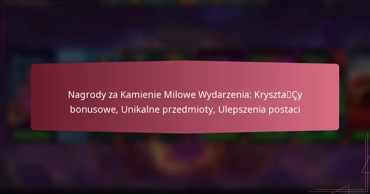 Nagrody za Kamienie Milowe Wydarzenia: Kryształy bonusowe, Unikalne przedmioty, Ulepszenia postaci